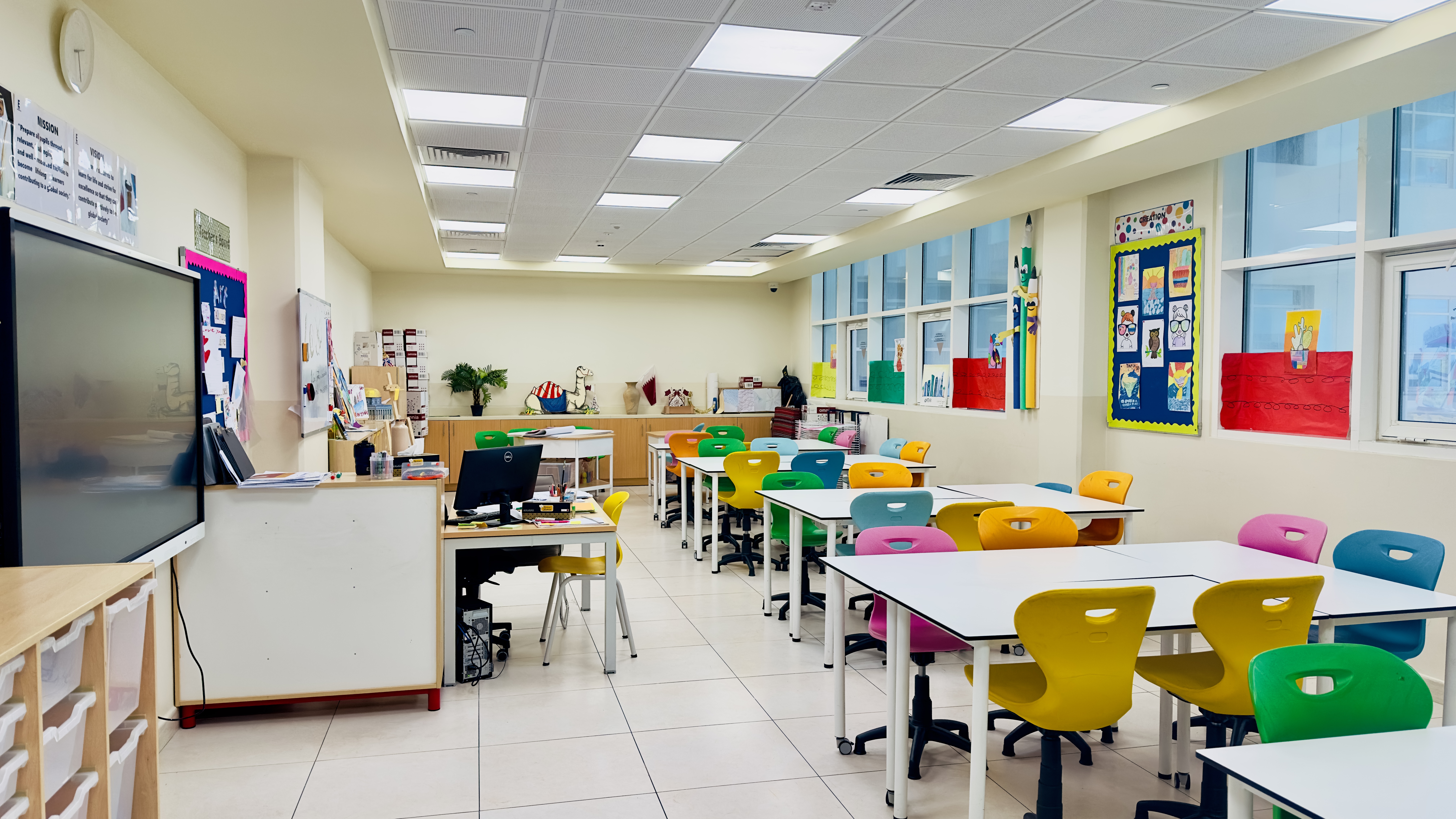 At Edison Global Academy, Lusail, our dedicated Art & Design Room is a bright, inspiring space where creativity thrives. Fully equipped for painting, drawing, sculpture, and design, the studio provides students with the tools and freedom to explore techniques, experiment with materials, and bring their artistic visions to life.